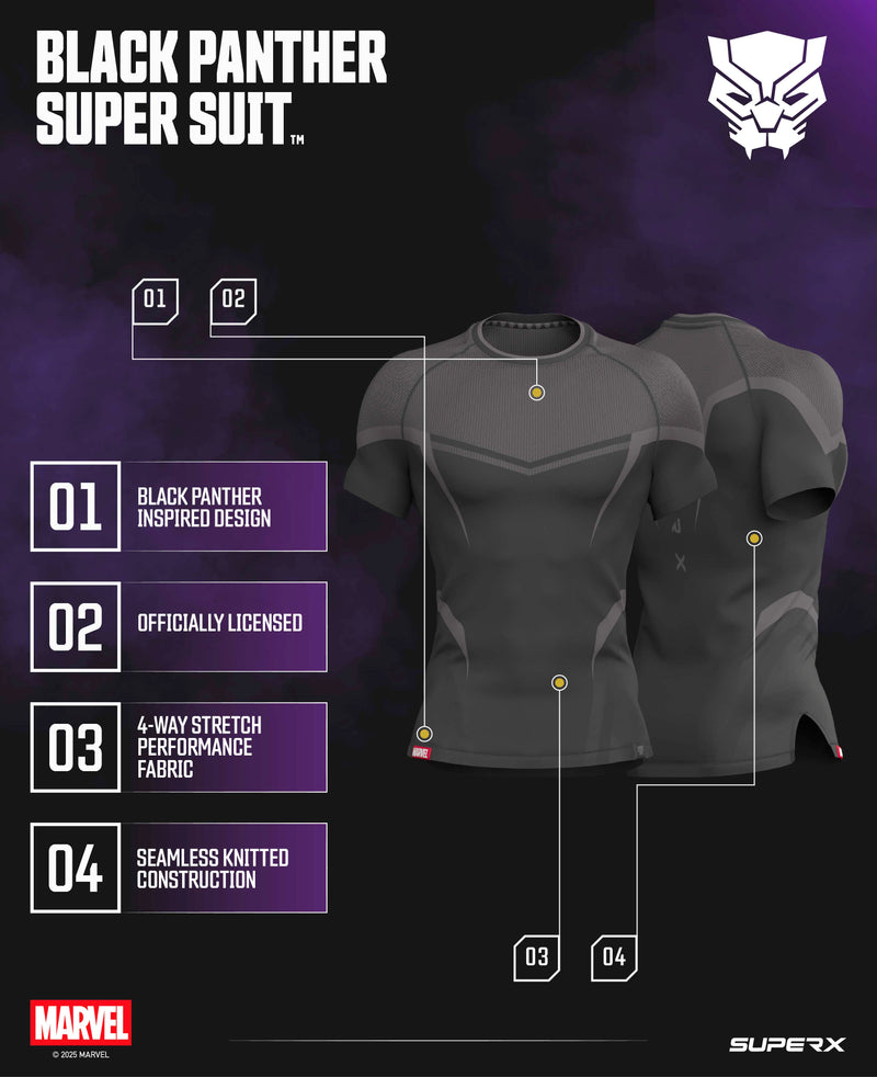 In collaboration with Marvel, SuperX proudly introduces SUPER SUITS™ – inspired by SPIDER-MAN, CAPTAIN AMERICA, WOLVERINE, THE PUNISHER, and BLACK PANTHER.