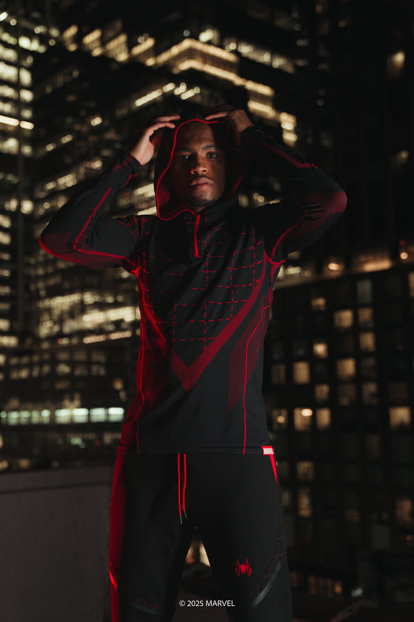 Introducing the official Spider-Man: Miles Morales Collection in collaboration with Marvel. Built for the city, the gym, and beyond — pairing iconic details inspired by Spider-Man’s suit with high performance materials.