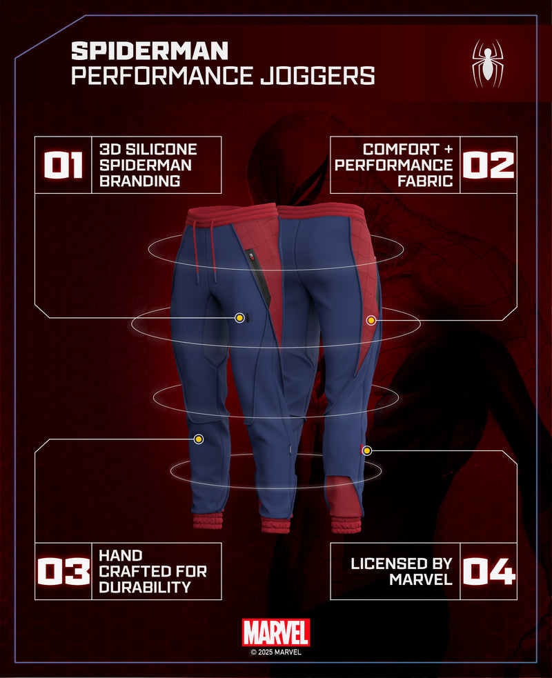 “With Great Power, Comes Great Responsibility” is more than Spider-Man’s motto, it is the inspiration for this collection. Pairing iconic details from Spider-Man’s suit capturing the sleek, dynamic, and web-inspired design with unmatched quality, making this one of the most groundbreaking collaborations in activewear history.